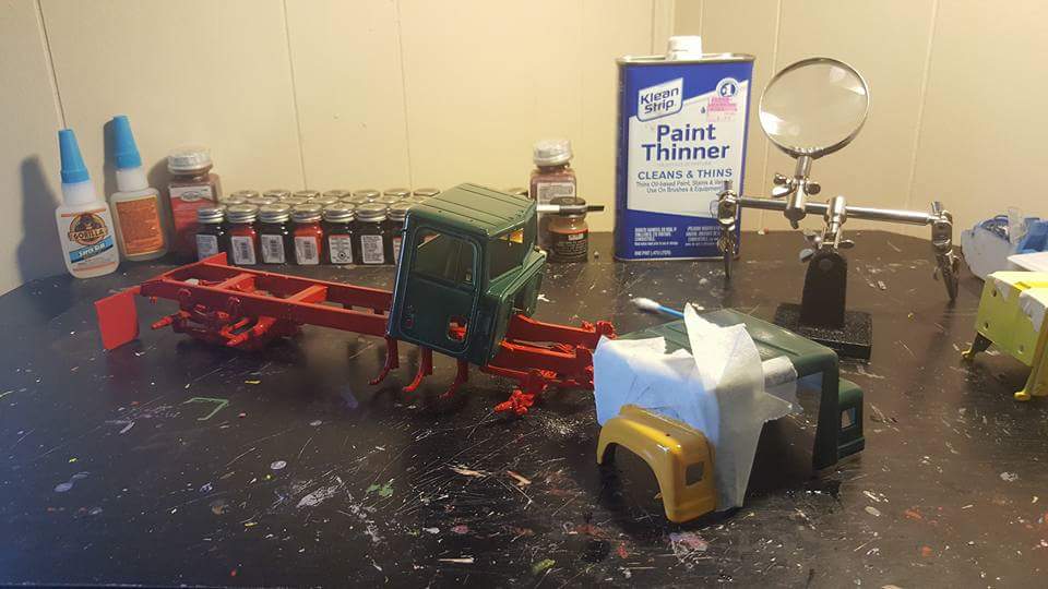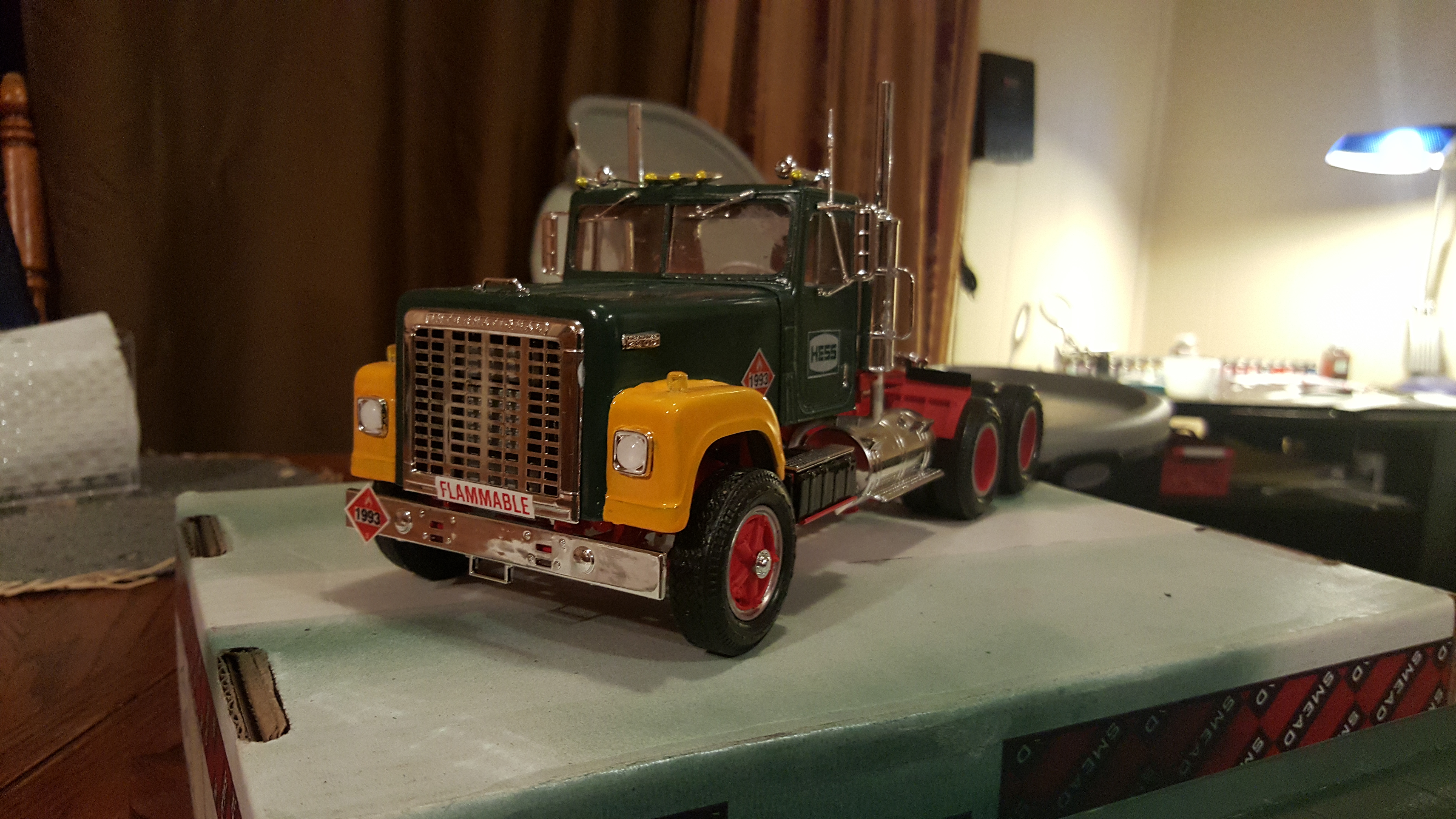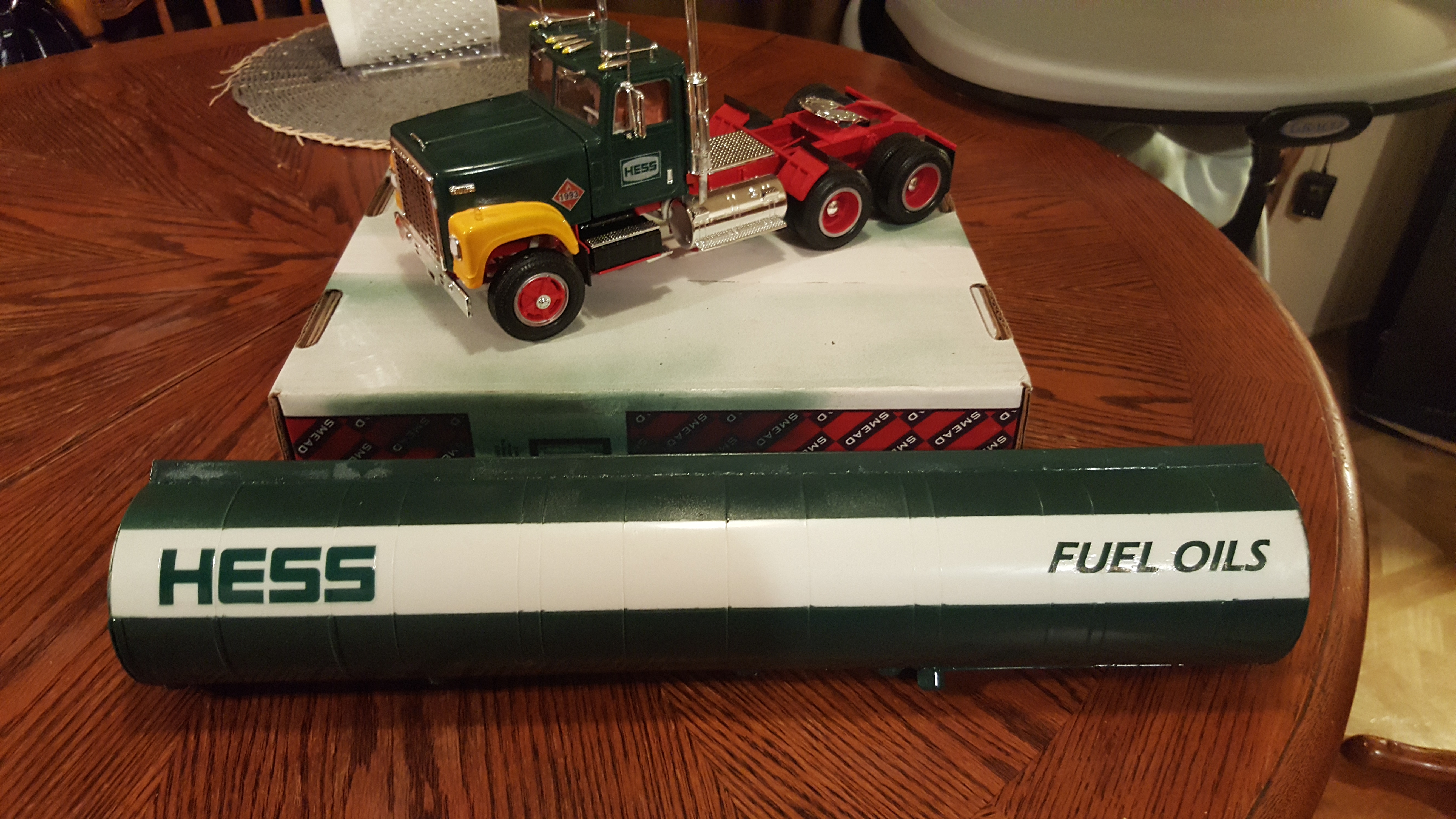 Augustus took the trailer and customized it to resemble the famous Hess toy trucks that we all remember from our childhood. He found the perfect green color in Dollar General, then used Testors Alert Red and Gloss Yellow to complete the paint job. The decals were made in Microsoft Word and printed on Testors decal paper.