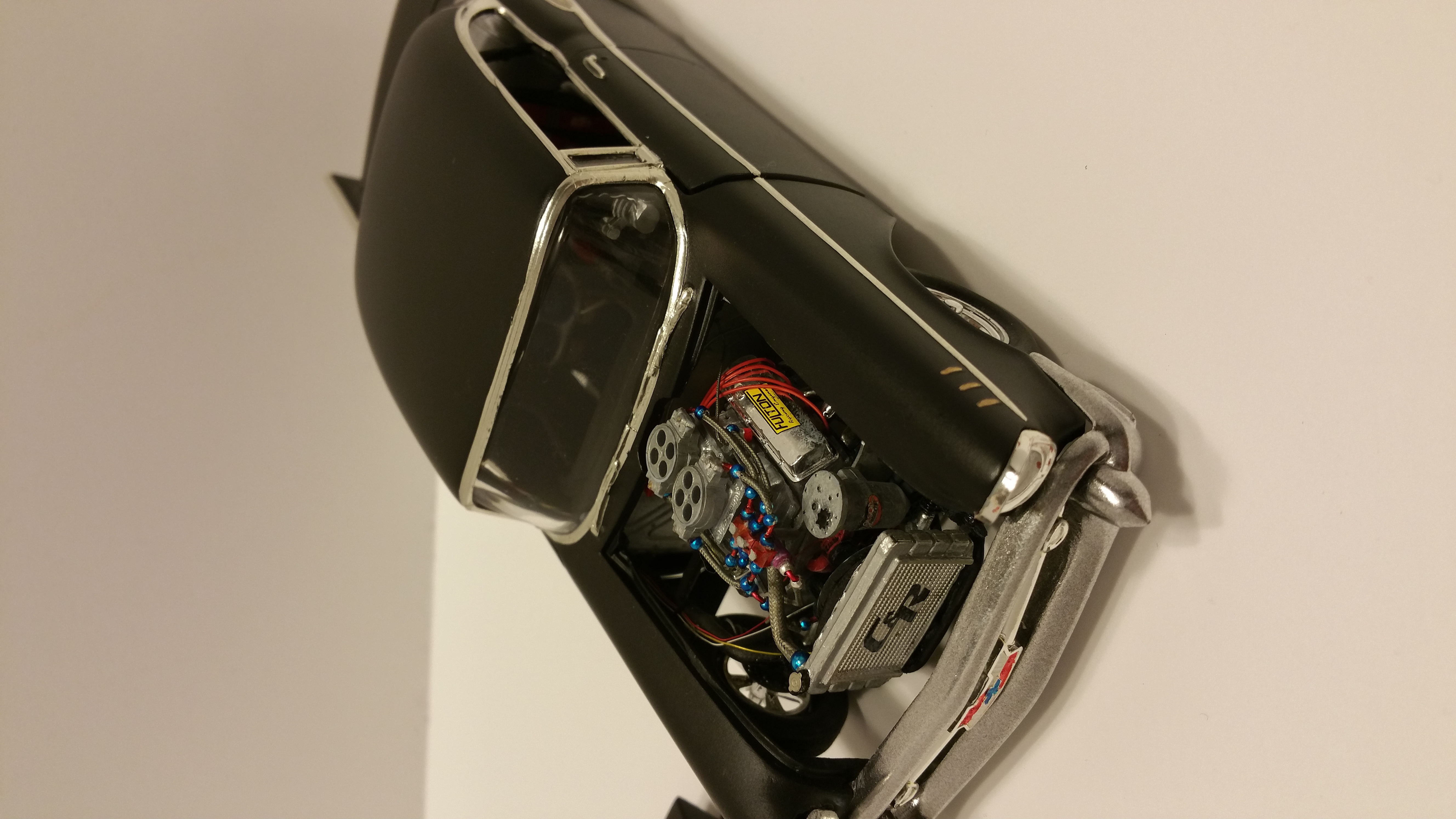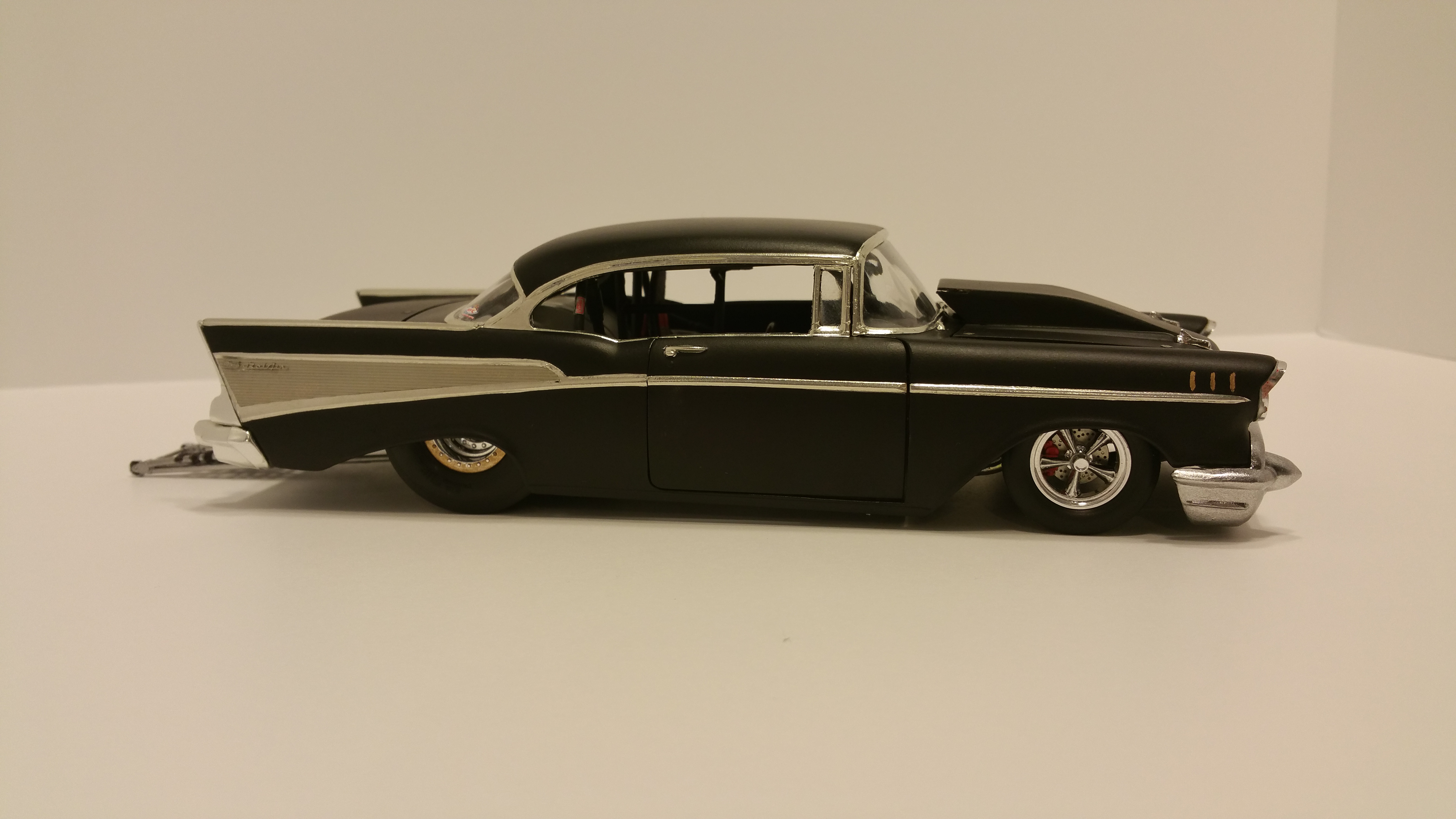 Brian built this 1957 Chevy using an AMT Body, Revell's Bob Glidden Thunderbird chassis, and scratch built the cage -- fully plumbed and wired!